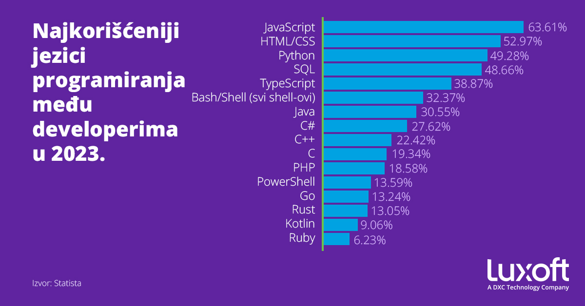 IT tržište je veoma dinamično. Prema Statista podacima, u 2023. godini veštine koje su regruteri najviše tražili bile su vezane za web development, dok je među jezicima programiranja prednjačio JavaScript, a najveći nedostatak veština je zabeležen u domenu sajber bezbednosti.